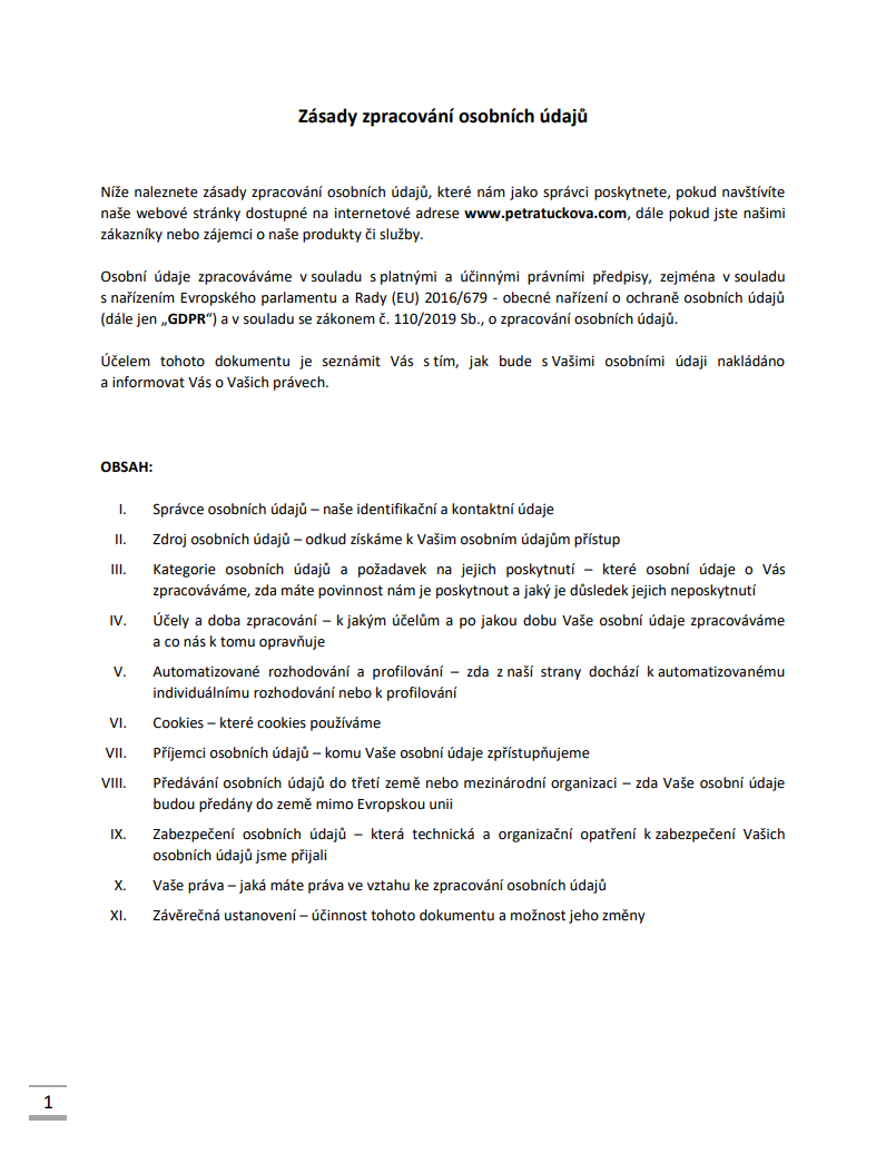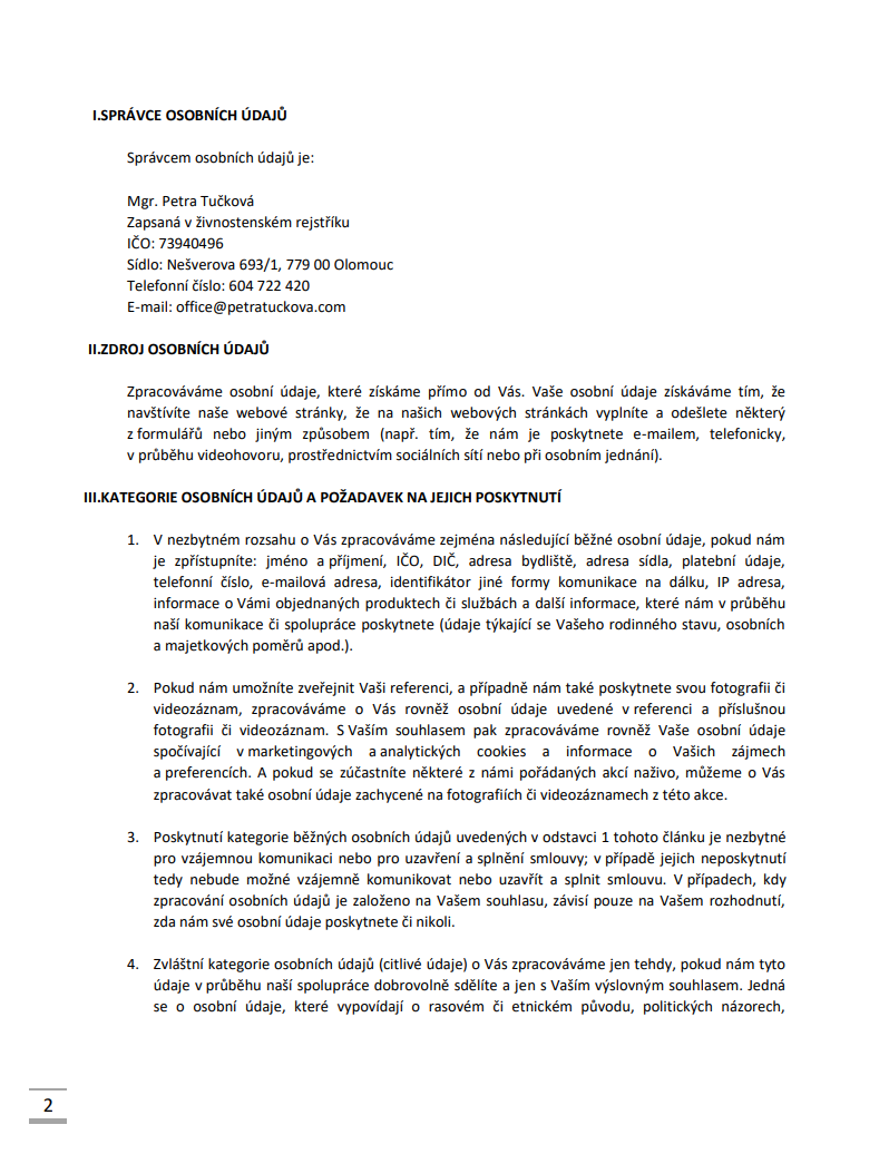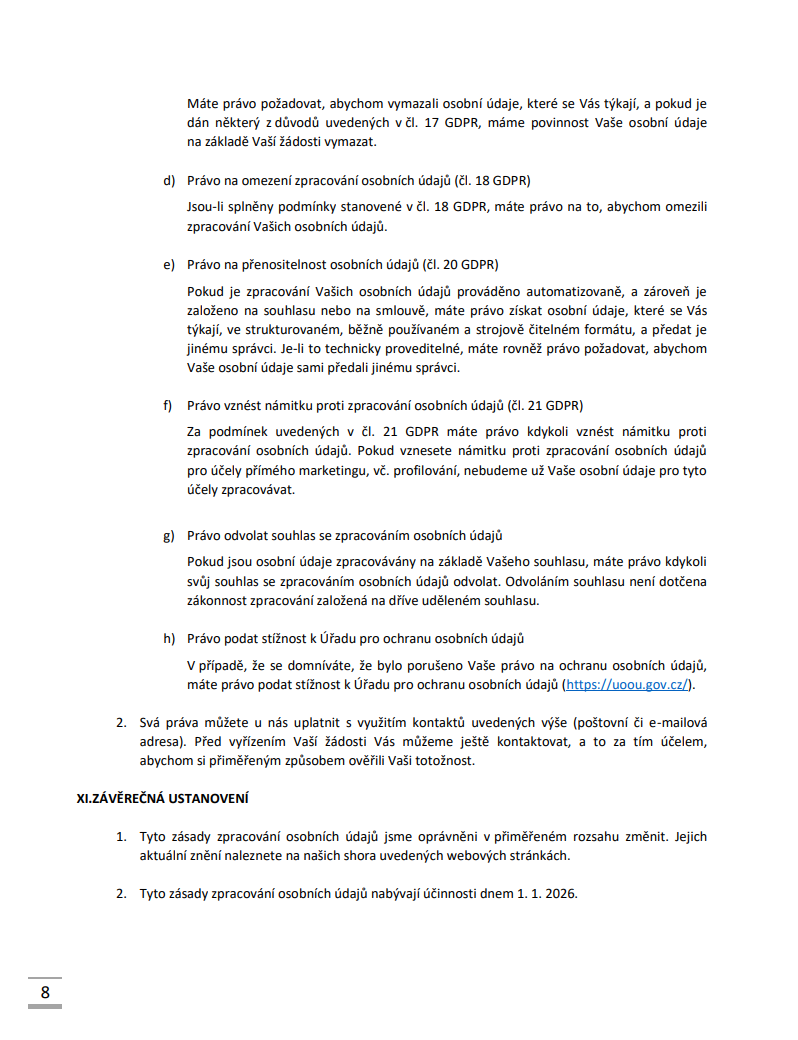 OCHRANA OSOBNÍCH ÚDAJŮ